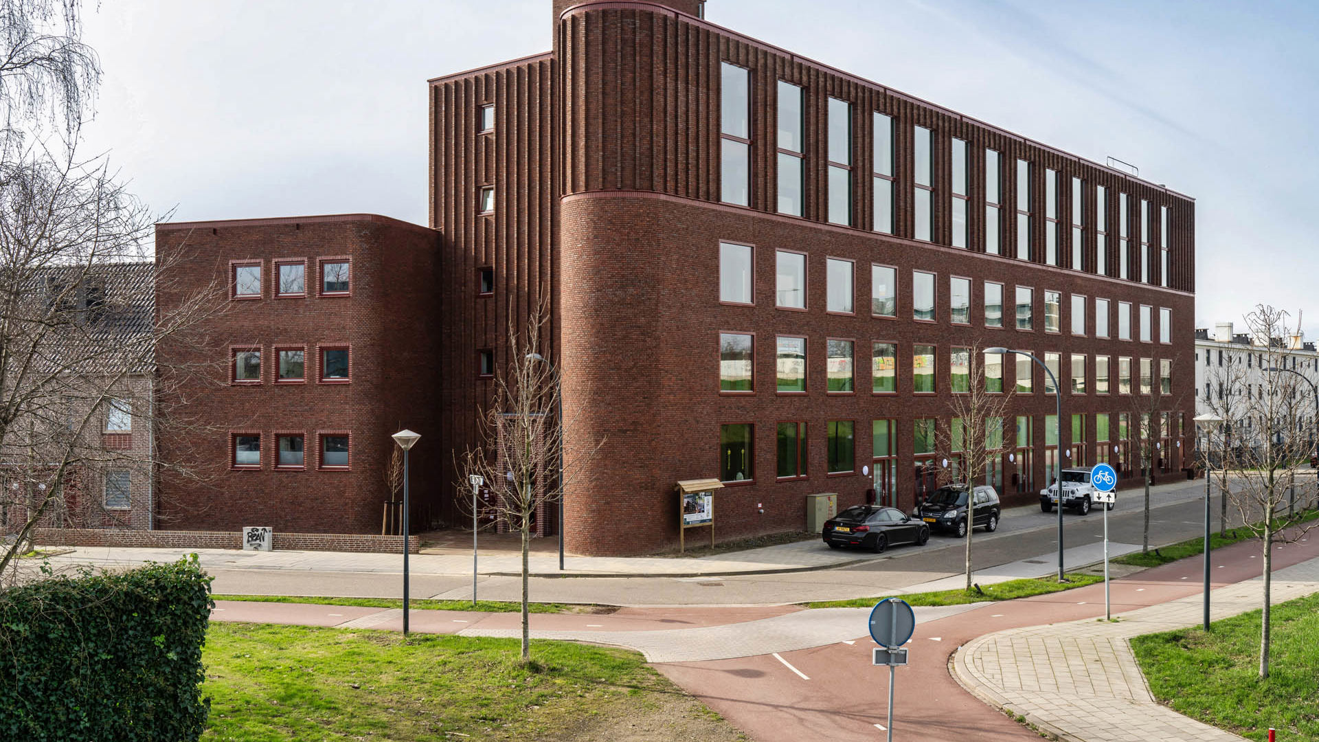 Het achterterrein van het complex is afgesloten, dus alleen bereikbaar voor bewoners. Hier liggen de parkeerplekken. Het hebben van een parkeerplek óf parkeerbox in het souterrain verschilt per appartement. Het souterrain beschikt ook over twee inpandige fietsenstalling die te gebruiken zijn door alle bewoners van het complex.